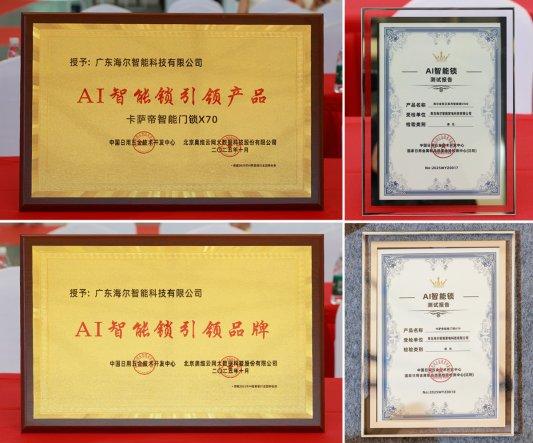据了解,峰会现场还同步落地了多项权威认证。首批AI智能锁的检测报告正式公布,其中海尔金吾卫系列智能门锁S900、卡萨帝智能门锁X70两款获得AI智能锁标准专业认证。卡萨帝智能门锁X70获评首批“AI智能锁引领产品”认证,海尔智能门锁还获得了首批“AI智能锁引领品牌”奖项,充分展现了其在AI智能锁市场的高端影响力与科技实力。
