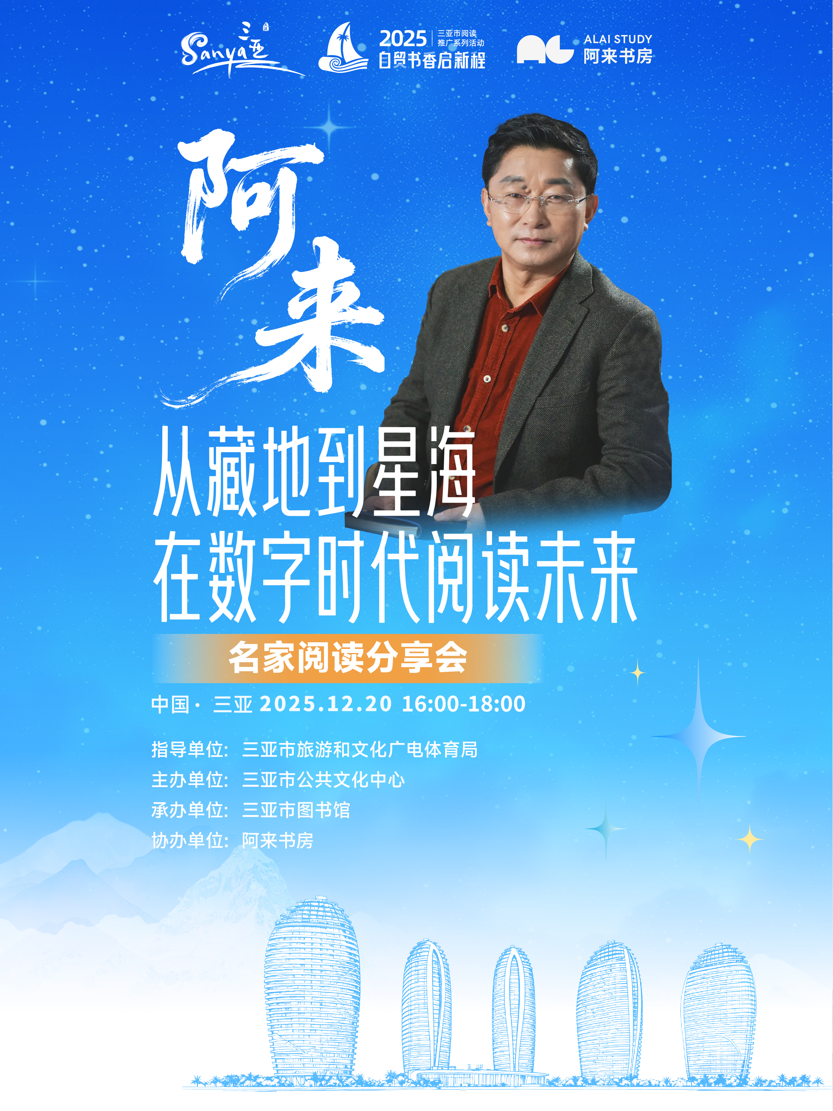 12月20日16:00-18:00,著名作家阿来将在三亚,带来“从藏地到星海:在数字时代阅读未来”名家阅读分享会。封面新闻客户端、“阿来书房”抖音直播间和“三亚市图书馆”视频号届时将全程直播活动,敬请关注收看。